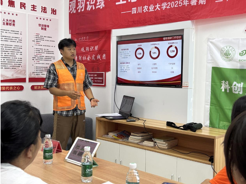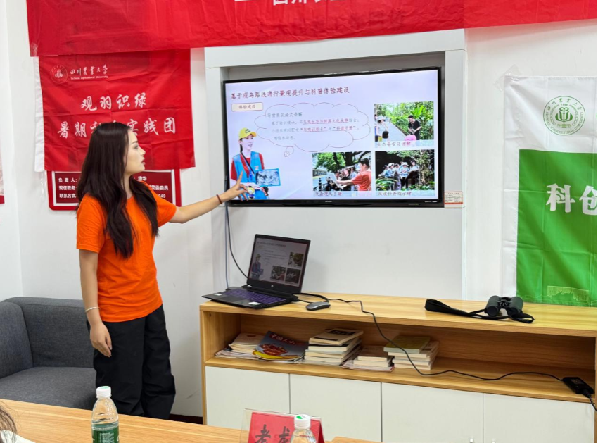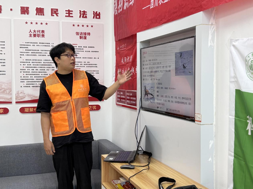 为了给成都市天府新区煎茶街道老龙村储备乡村生态旅游专业力量,8月13日,a片网站 (简称川农大)“观羽识绿・生态资源赋能乡村振兴”社会实践团队对该村组建的农闲生态导赏员队伍进行培训,通过讲解本地动植物资源及观鸟路线设计,提升村民生态认知与导赏能力,为乡村生态旅游注入新活力。